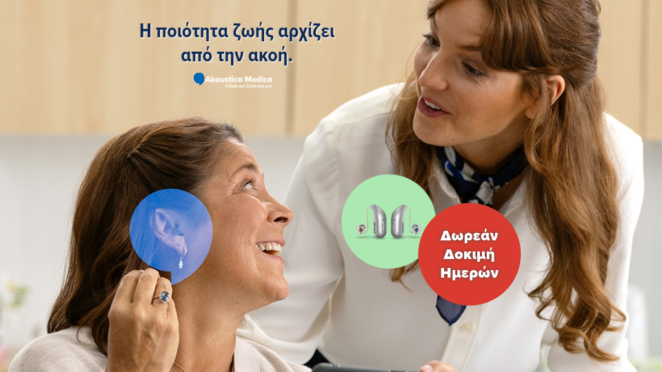 Αισθανθείτε τη διαφορά που μπορεί να κάνει η προηγμένη τεχνολογία! Κλείστε σήμερα το ραντεβού σας για ΔΩΡΕΑΝ ΔΟΚΙΜΗ ΗΜΕΡΩΝ και δωρεάν αξιολόγηση ακοής!